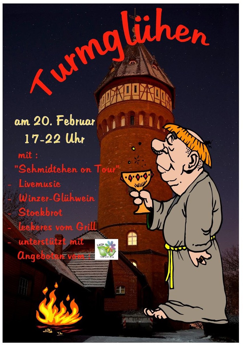 Am Freitag, den 20. Februar, laden wir Dich herzlich zum Turmglühen am Wasserturm ein. Von 17 bis 22 Uhr bringen wir gemeinsam Licht, Wärme und gute Stimmung in die dunkle Jahreszeit.
